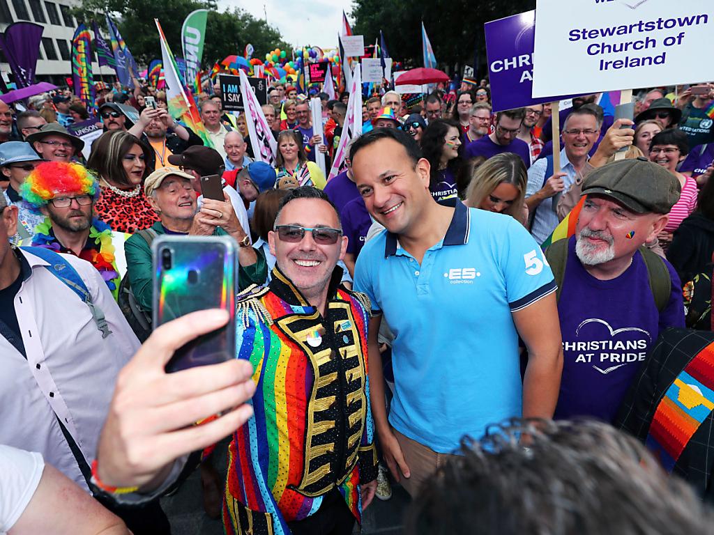 Auch der Premierminister der benachbarten Republik Irland, Leo Varadkar, nahm an der farbenfrohen Parade im Zentrum Belfasts teil. Zum ersten Mal in der Geschichte der Stadt wurde die Regenbogen-Flagge, das Symbol der Schwulenbewegung, am Rathaus von Belfast gehisst.