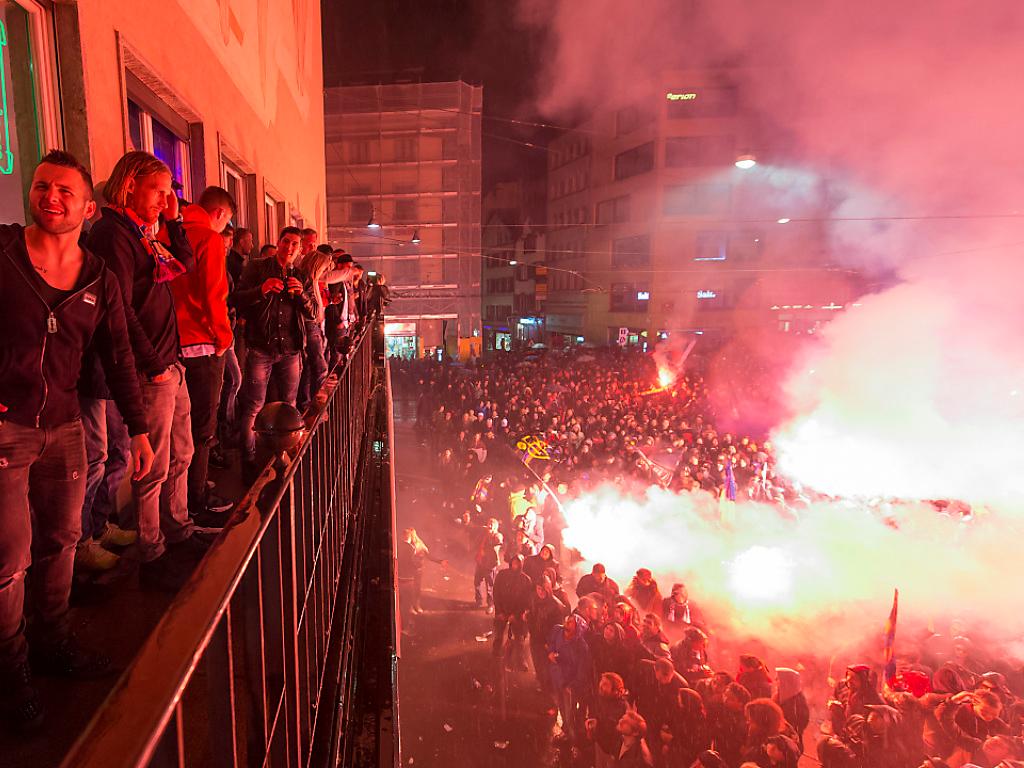 Um den siebten FCB-Meistertitel in Folge zu feiern, strömten die Anhänger nach der Partie ins Stadtzentrum. Die Mannschaft erschien kurz nach 00.30 Uhr auf dem Balkon des Stadtcasinos und wurde von den auf dem Barfüsserplatz dicht gedrängt stehenden Fans mit Sprechchören und Gesängen gefeiert.