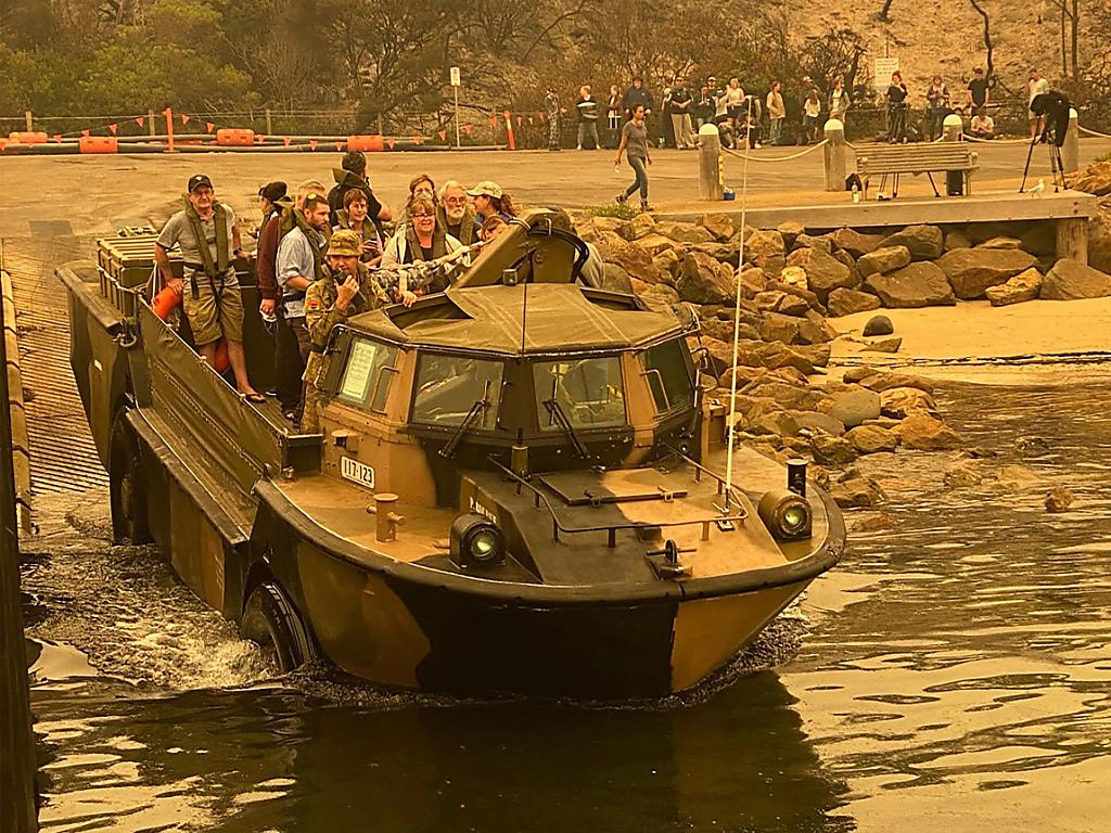 Am Freitag bildeten sich lange Staus, das Benzin wurde knapp. Die Polizei eskortierte die Autos aus den Feuergebieten. In der Küstenstadt Mallacoota brachte die Marine Menschen in Sicherheit, die sich an den Strand gerettet hatten.