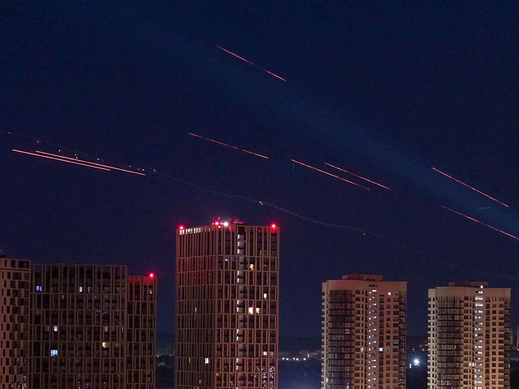 Die ukrainische Luftabwehr feuert, um Drohnen in einer Welle von Bombardements auf Kiew zu stoppen. Foto: Evgeniy Maloletka/AP Keystone/AP/Evgeniy Maloletka sda-ats