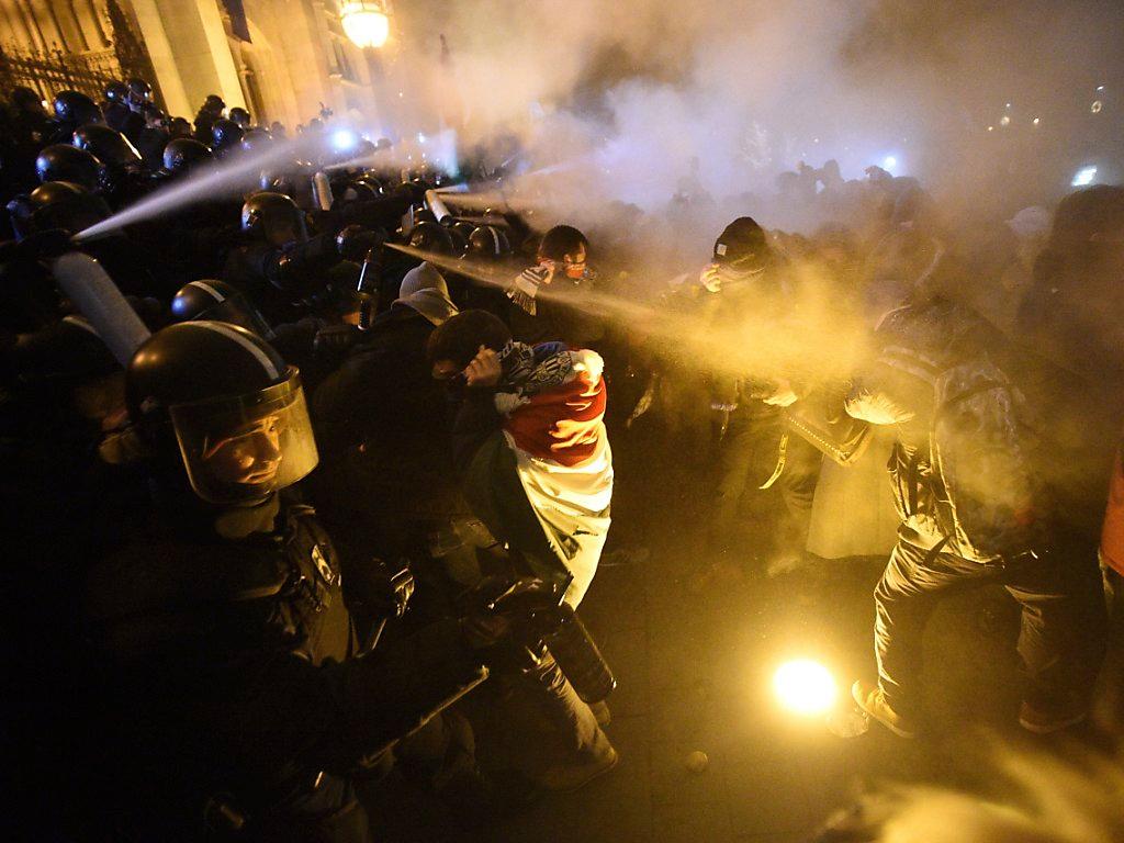 Bei klirrender Kälte waren die Demonstranten stundenlang durch die Innenstadt gezogen und hatten damit zeitweise den Verkehr lahmgelegt. Unterwegs gab es mehrere Tränengas-Einsätze der Polizei, darunter auch vor dem Parlamentsgebäude.