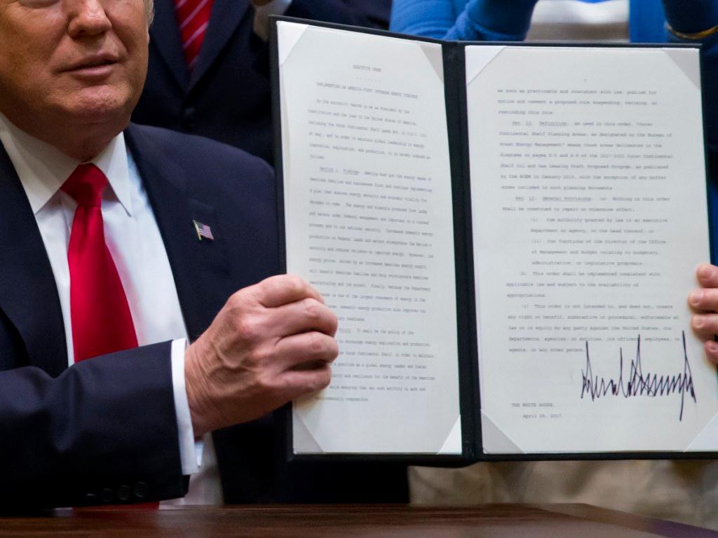 (Keystone-SDA) US-Präsident Donald Trump will die von seinem Vorgänger Barack Obama verhängten Einschränkungen für Erdöl- und Erdgasbohrungen in der Arktis und im Atlantik auf den Prüfstand stellen. Trump unterzeichnete ein Dekret, das eine Prüfung der Bohrverbote anordnet.