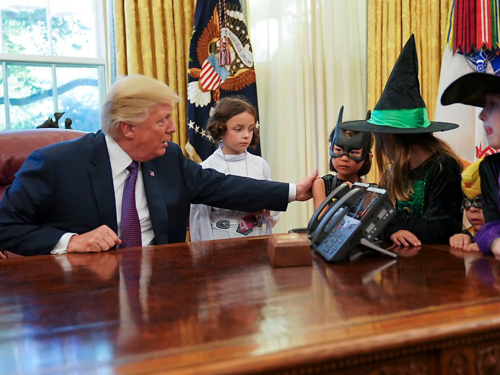 «Ihr nehmt euch, was ihr möchtet, ok? Wenn ihr etwas für eure Freunde haben möchtet, nehmt es. Wir haben jede Menge», sagte Trump am Freitag (Ortszeit) als er Schokolade an die kostümierten Kinder verteilte.