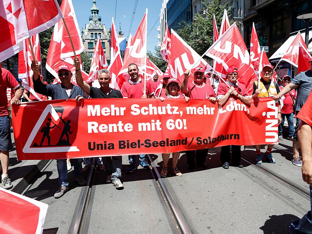 «Eine Erhöhung ist gegenüber den Bauarbeitern, die immer hart gearbeitet haben, respektlos.» Die meisten Teilnehmenden trugen denn auch ein rotes T-Shirt, auf dessen Rückseite eine 60 aufgedruckt war.