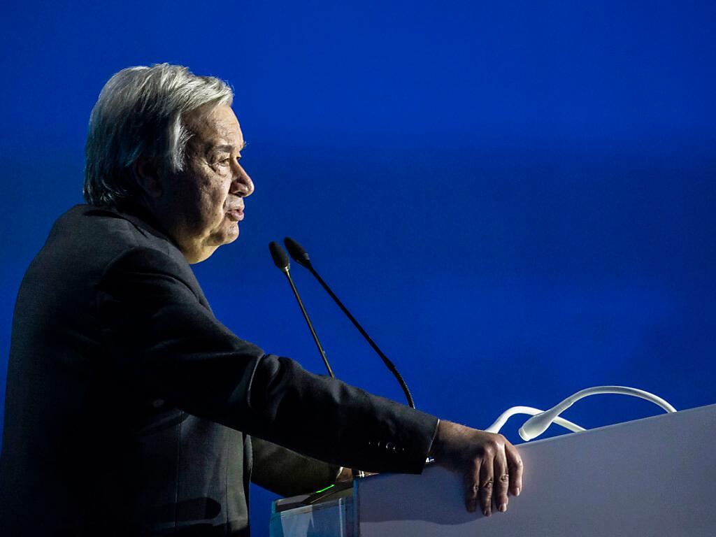 Das 2015 auf der Weltklimakonferenz in Paris vereinbarte Ziel, die Erwärmung auf 1,5 Grad zu begrenzen im Vergleich zur vorindustriellen Zeit, sei akut gefährdet. Der Portugiese rief zu einem «Klima-Solidarpakt» auf, den wohlhabende Staaten jetzt mit Schwellen- und Entwicklungsländern schliessen müssten. Dabei stünden die USA und China besonders in der Verantwortung. Wörtlich sagte er: «Die Menschheit hat eine Wahl: zusammenzuarbeiten oder unterzugehen!».