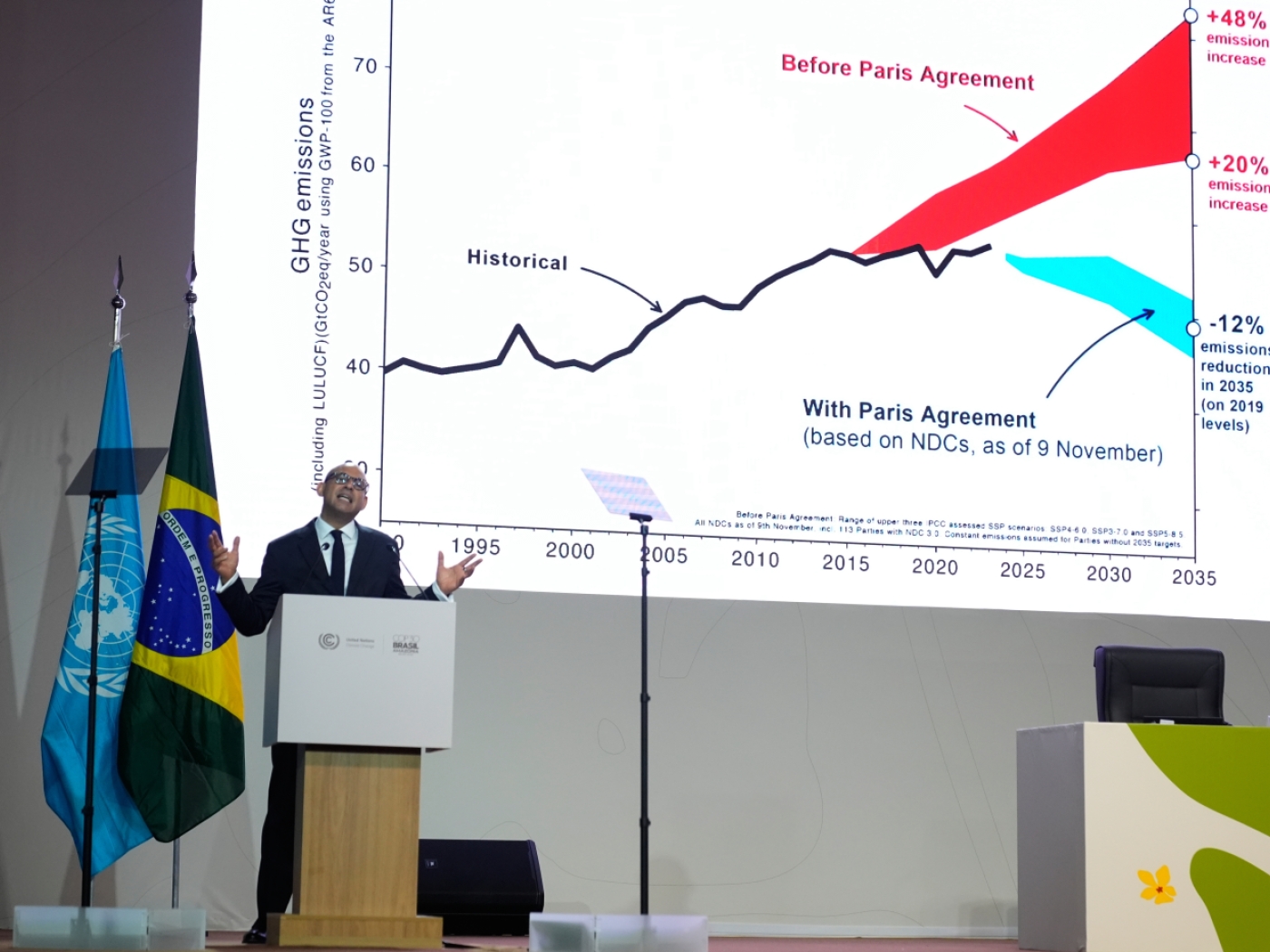 Zum Konferenzpräsidenten wählte das Plenum den brasilianischen Karrierediplomaten André Corrêa do Lago. Er sagte, eine Zusammenarbeit der Staaten, also Multilateralismus, sei der Schlüssel zum Erfolg. Diese COP müsse konkrete Lösungen liefern. Vor allem solle das Treffen eines sein, das auf die Wissenschaft höre und an ihre Ergebnisse glaube.