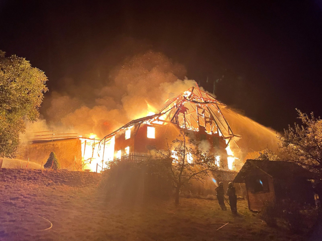 Der Brand war am Samstagmorgen des 14. Oktobers 2023 kurz vor 4.40 Uhr gemeldet worden. Rund 50 Feuerwehrleute kämpften gegen die Flammen an. Drei Personen konnten sich rechtzeitig ins Freie begeben. Verletzt wurde niemand. Tiere kamen keine zu Schaden.