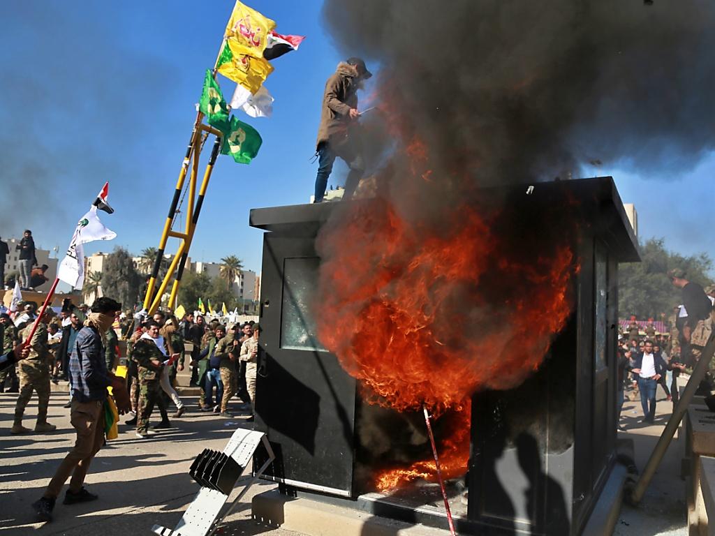 Aus Protest gegen US-Luftangriffe auf pro-iranische Milizen im Irak hatten tausende Demonstranten das Botschaftsgelände gestürmt. Sie riefen «Tod Amerika», forderten den Abzug der US-Truppen im Irak, warfen Steine, verbrannten US-Flaggen und rissen Überwachungskameras aus den Wänden.