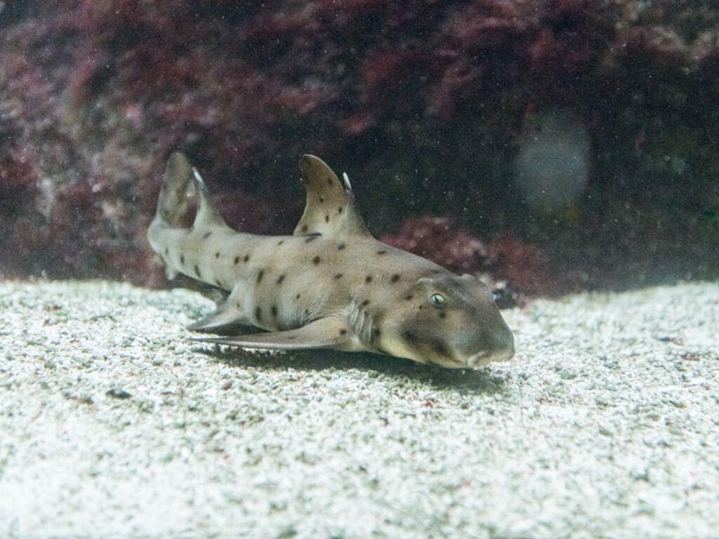 Aus dem gleichen Verbreitungsgebiet wie die Stierkopfhaie stammen die Kalifornischen Schwellhaie. Zwei weibliche Tiere sind neu im Zoo Basel eingetroffen. Sie kamen 2018 im Zoo Leipzig zur Welt. Und auch hier sind die Umstände der Geburt speziell.