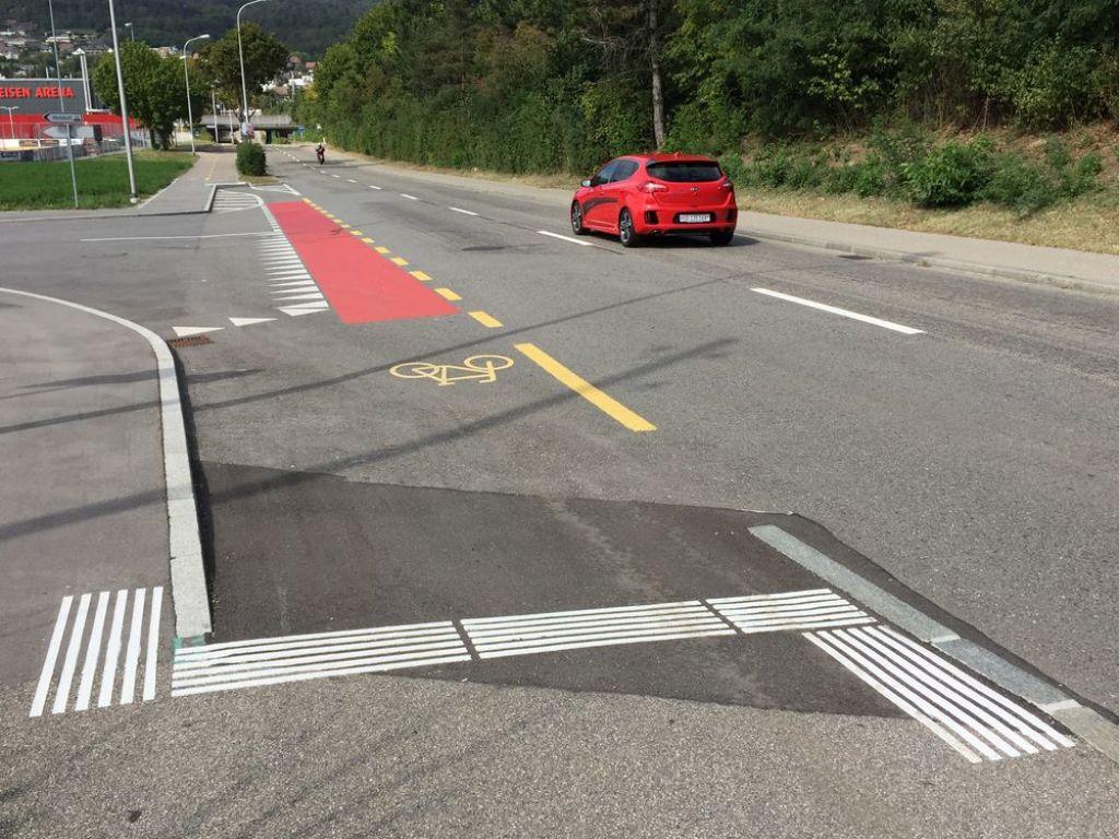 Durch eine einfache Fahrbahnmarkierung könnte nach Ansicht des VCS auch ein unterbrochener Veloweg in Baden AG velofreundlich gemacht werden.