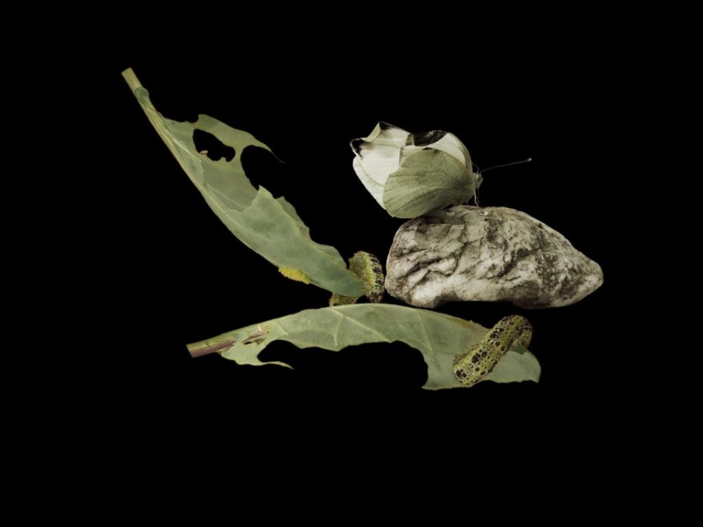 Nicht immer brauchte er dafür lange Wege: Eines der Werke zeigt Blumen, Erdbrocken, Gras, Steine, eine zerknüllte Zeitungsseite. Sie stammen aus einem Quadratmeter Wiesland, gefunden direkt vor dem Atelier. Wie ausgesetzt im schwerenlosen Weltraum drehen sich die einzelnen Elemente in einer langsamen, dreidimensional anmutenden Bewegung – in einem ewigen Loop.