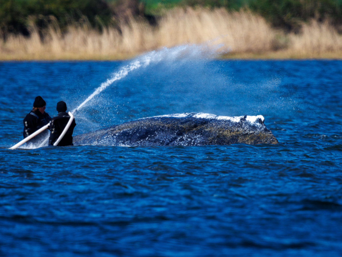 (Keystone-SDA) Das war in Live-Streams zu sehen. Immer wieder hielt ein Helfer eine Art Rohr an einem Schlauch beim Wal ins Wasser, offenbar als Teil des Versuches, ihn freizuspülen.