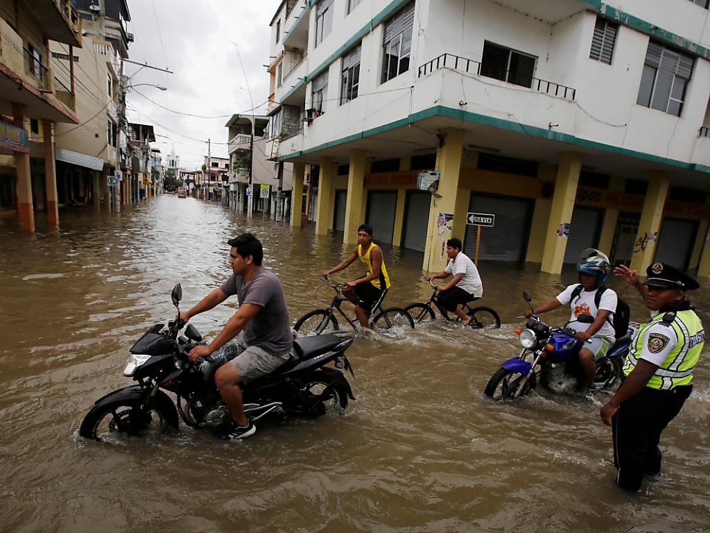 Nach Angaben der Risikomanagement-Behörde SGR sind in Ecuador mehr als 142’000 Menschen betroffen und rund 10’000 Hektar Anbaufläche beschädigt. Die grössten Schäden habe es in der Küstenregion gegeben.