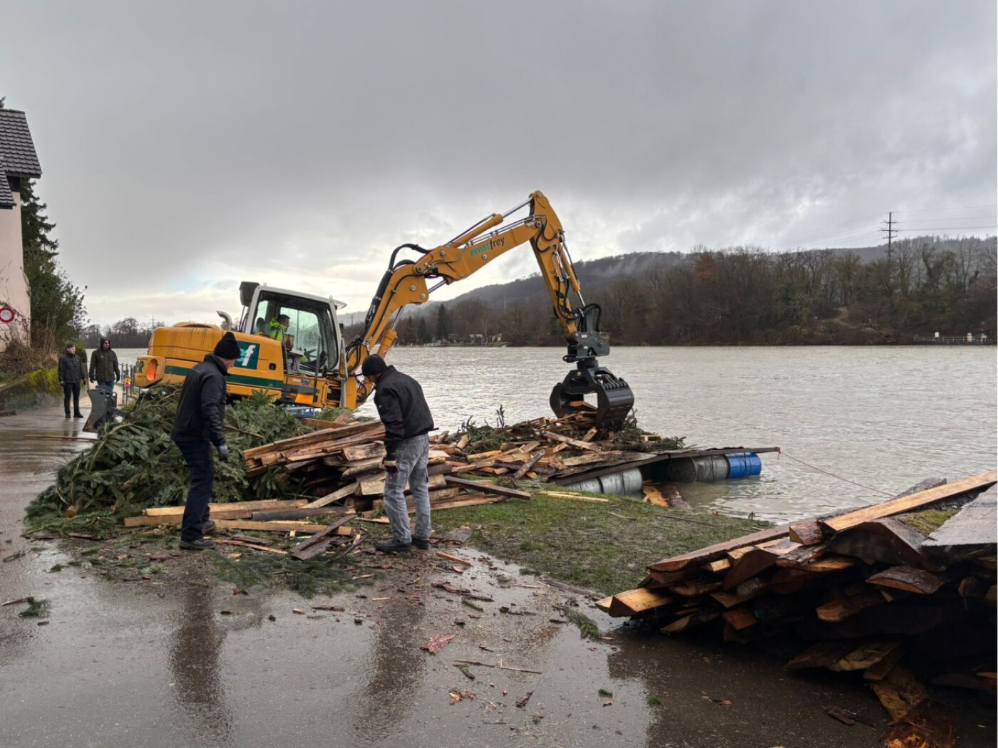 Wassermassen versenken das Fasnachtsfeuer-Floss in Kaiseraugst AG