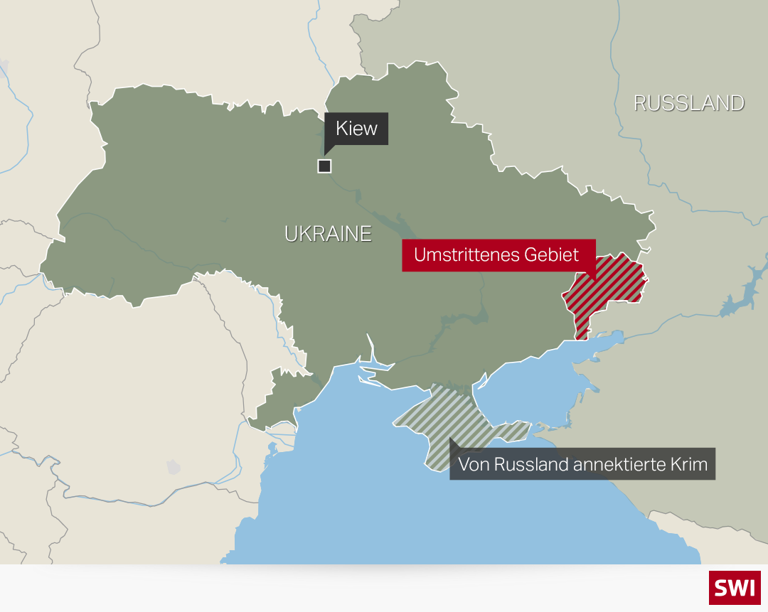Im Februar 2014 marschierte Russland in der Krim-Halbinsel ein und annektierte diese nach einem umstrittenen Referendum einige Wochen später. Pro-russische Separatisten wollen darüber hinaus den Osten des Landes mit Waffengewalt von der Ukraine abspalten. Im Frühling 2014 riefen sie – ohne internationale Anerkennung und nach einem rechtswidrigen Referendum – die Volksrepubliken Donezk und Lugansk aus. In der Ostukraine herrschen seither kriegsähnliche Zustände zwischen moskautreuen Separatisten und den ukrainischen Streitkräften. Ein Ende des Konflikts ist nicht in Sicht.