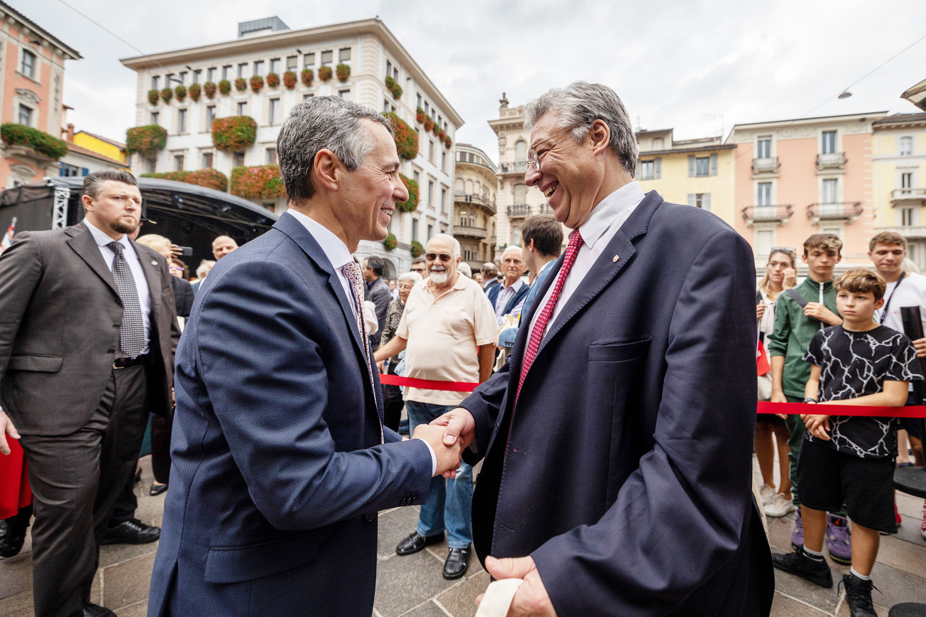 Begabter Netzwerker: Filippo Lombardi mit Bundespräsident Ignazio Cassis an der Feierlichkeiten zu dessen Ehren im September 2022 in Lugano. © Keystone – Ats / Ti-press