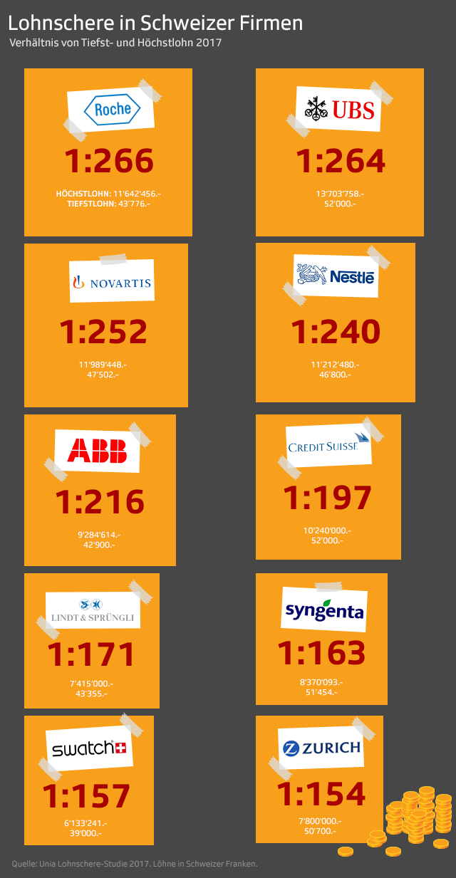 Die Unternehmen mit den grössten internen «Lohnscheren» im Überblick: