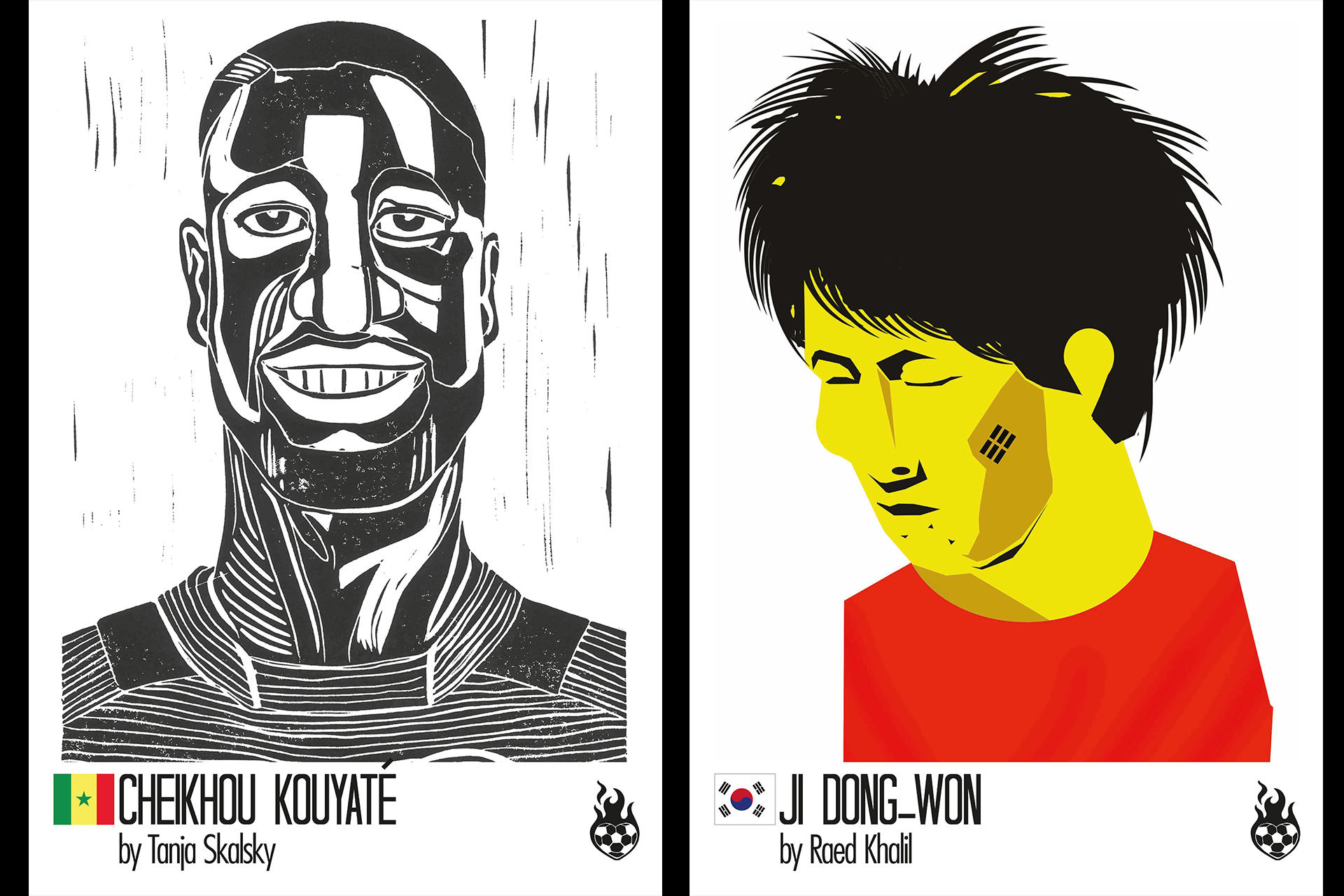 «Mehr als 500 Illustratoren aus etwa dreissig Ländern machten mit. So ermittelten wir jene 32 Gewinner, die auf einer Doppelseite die Spieler der 32 Nationalmannschaften gestalteten», so Glanzmann.