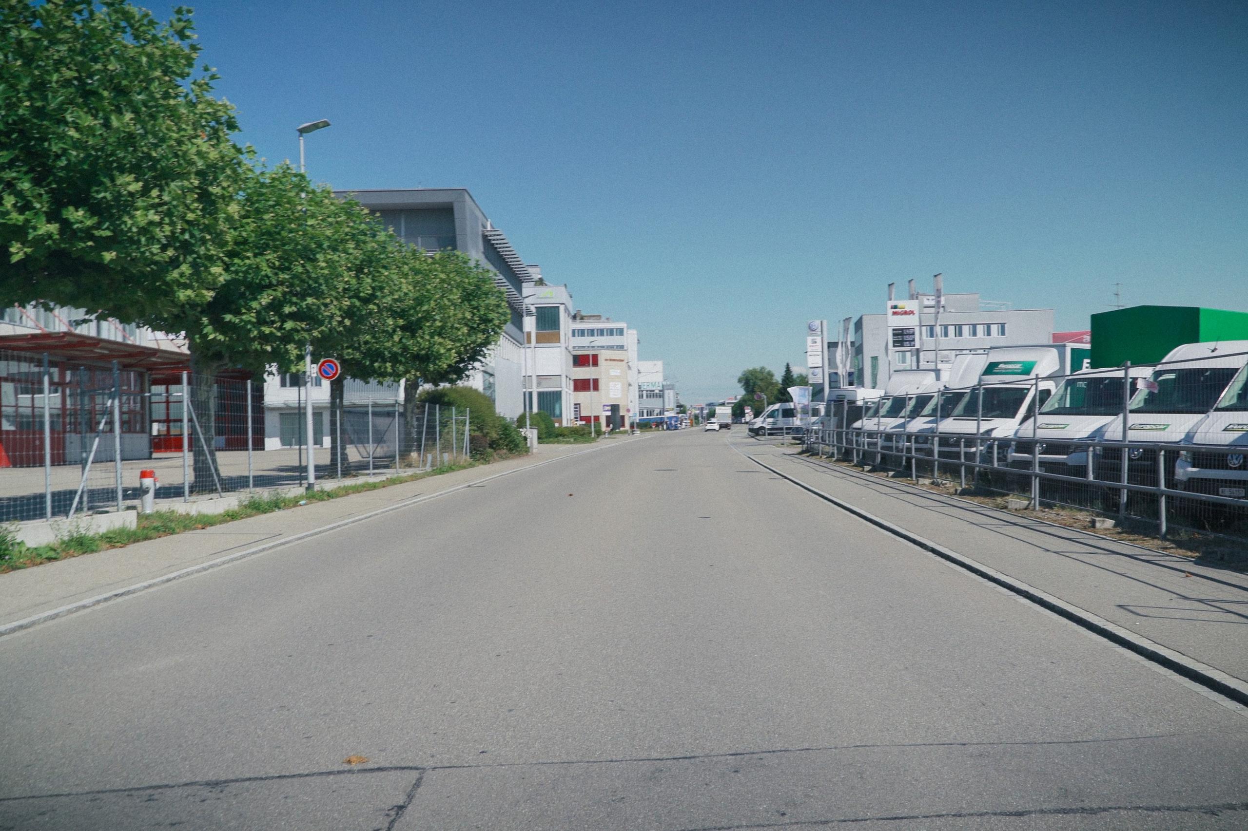Er führt uns zur Andreasstrasse, einem Velo- und Fussweg entlang eines Baches. Tatsächlich ist das nächste Gebäude ein Parkhaus; daneben steht ein Autogrill mit grell bemalten Plastik-Bartischen. «Sowas sieht man normalerweise in der Agglomeration», sagt Van Wezemael.