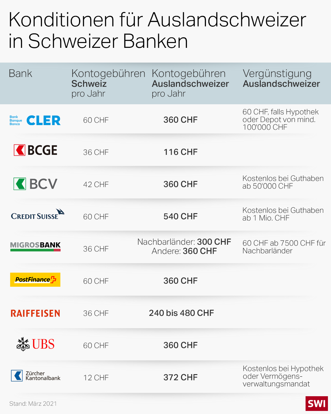 Der Unmut vieler Auslandschweizer:innen über die hohen Gebühren bei Schweizer Banken scheint also kaum behoben.