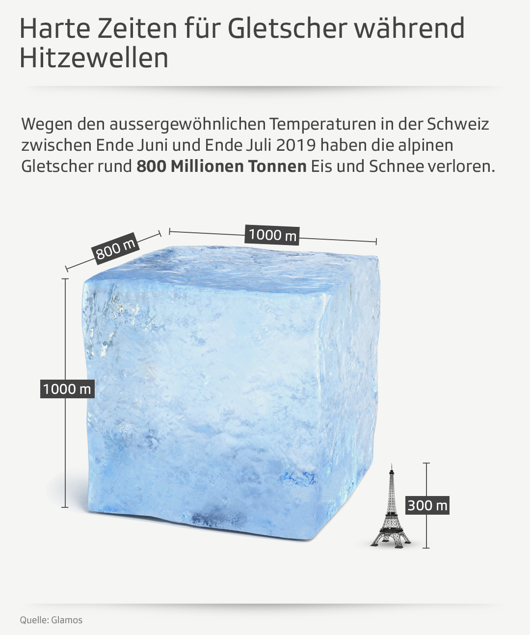 Doch was heisst diese Zahl? Sie entspricht etwa einem Eisklotz, der dreimal so hoch ist wie der Eiffelturm in Paris, dreimal so lang und dreimal so tief. Vergleichbar sei der Schneeverlust ebenfalls mit der Menge an Trinkwasser, welche die Schweizer Bevölkerung (8,5 Millionen Menschen) pro Jahr verbrauche, so Huss.