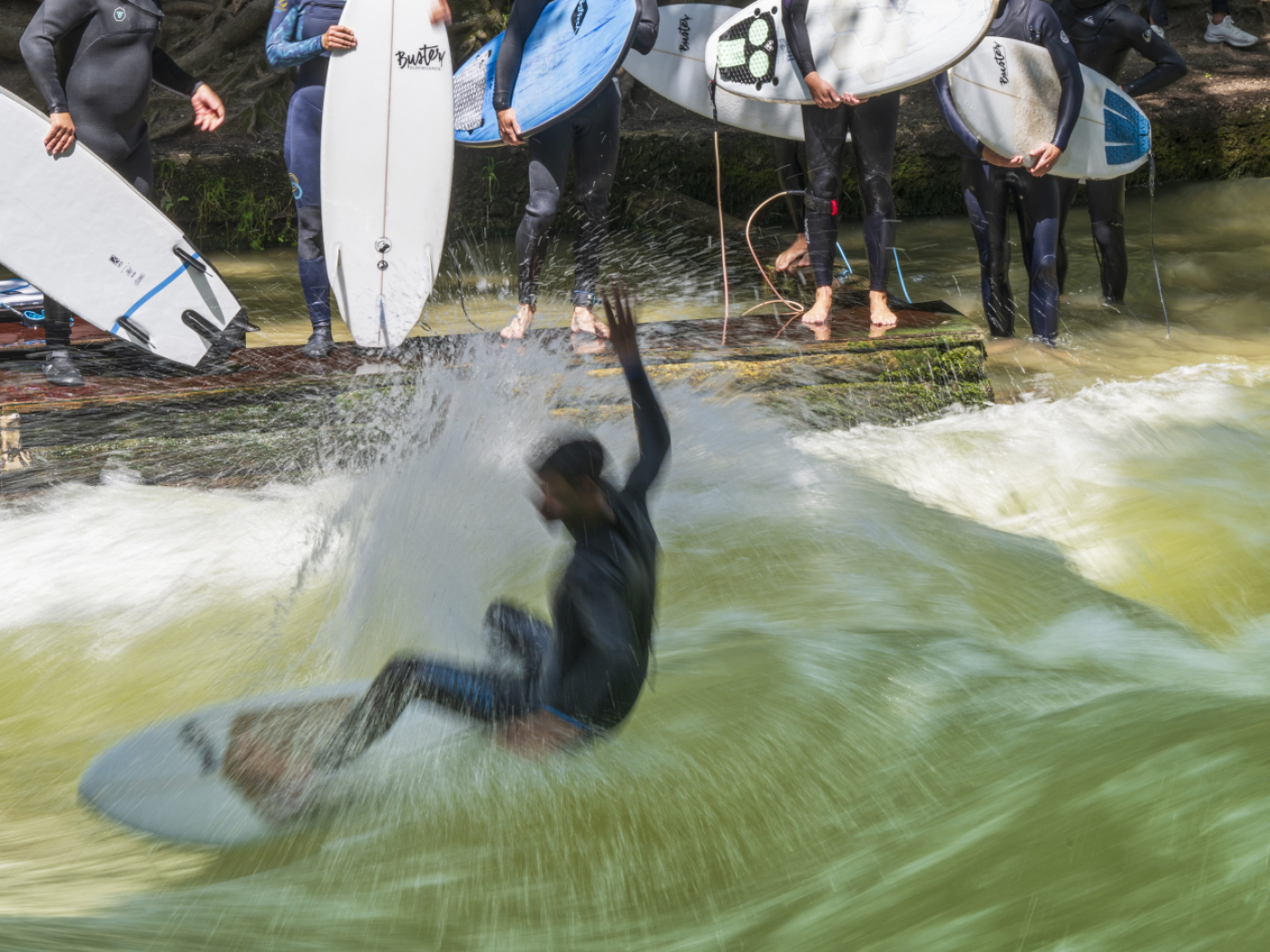 Die Eisbachwelle im Englischen Garten in München, welche die Motionäre als Vorbild nennen, verschwand nach einer Putzaktion im vergangenen Herbst und baute sich seitdem nicht mehr stabil auf. Seit Februar ist Surfen auf der Eisbachwelle verboten, wie es auf der Internetseite der Stadt heisst.