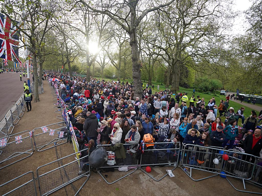 (Keystone-SDA) Bereits Stunden vor Beginn der Königsprozession von König Charles III. und Königin Camilla sind zahlreiche Schaulustige am frühen Samstagmorgen ins Zentrum von London geströmt. Hunderte Royal-Fans hatten die Nacht entlang der Prachtstrasse The Mall campiert, um gute Plätze zu ergattern. Sie wird Charles und Camilla am Vormittag vom Buckingham-Palast zur Westminster Abbey führen. Einige Hartgesottene harrten dort bereits seit Tagen aus. Viele trugen Hüte, Brillen und Kleidung in den Farben der britischen Flagge.