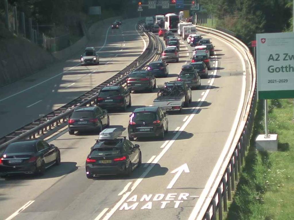 Auch in Richtung Norden brauchte es Geduld. Zwischen Quinto und Airolo TI staute sich der Verkehr zeitweise ebenfalls auf mehreren Kilometern.
