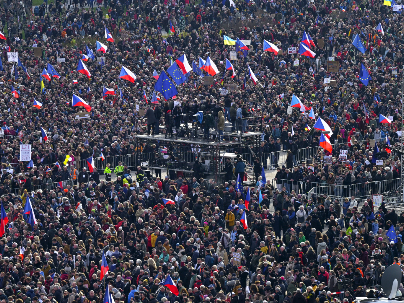 Weitere Kritikpunkte waren die jüngsten Kürzungen bei den Verteidigungsausgaben sowie geplante Änderungen bei der Finanzierung der öffentlich-rechtlichen Medien. Die Veranstalter sprachen von bis zu 250.000 Teilnehmern, die sich in einem grossen Park auf der Letna-Ebene hoch über der Moldau versammelten.