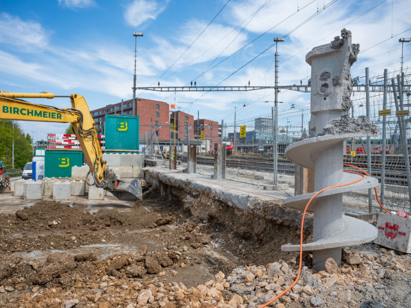 Die unmittelbare Nähe zu den Gleisen stellt die Arbeiten vor besondere Herausforderungen. Um den Bahnbetrieb rund um die Uhr zu gewährleisten, überwachen drei Messstationen sowie 450 Messprismen die Bauzone. Zudem schützt eine provisorische Wand zwischen Baustelle und Schienen den Bahnverkehr, wie Peters weiter sagte.