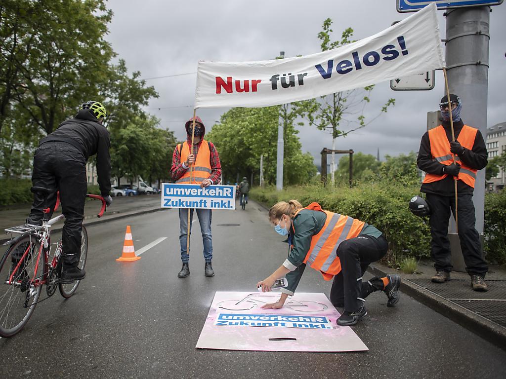 Wegen dieser Velo-Demo in Zürich vom 14. März 2020 stand die Gemeinderätin Simone Brander (SP) am Donnerstag vor dem Bezirksgericht Zürich. (Archivbild) KEYSTONE/ENNIO LEANZA sda-ats
