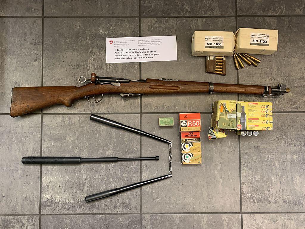 Entdeckt wurden gemäss Behördenangaben ein Karabiner#11, ein dazu gehörendes Magazin, 131 Gewehrpatronen für den Karabiner, 53 Flintengeschosse Kaliber 12/70, 394 Kleinkaliber-Patronen Long Rifle#.22, 129 Gewehrpatronen neun Millimeter sowie 50 Patronen Kaliber#.38.