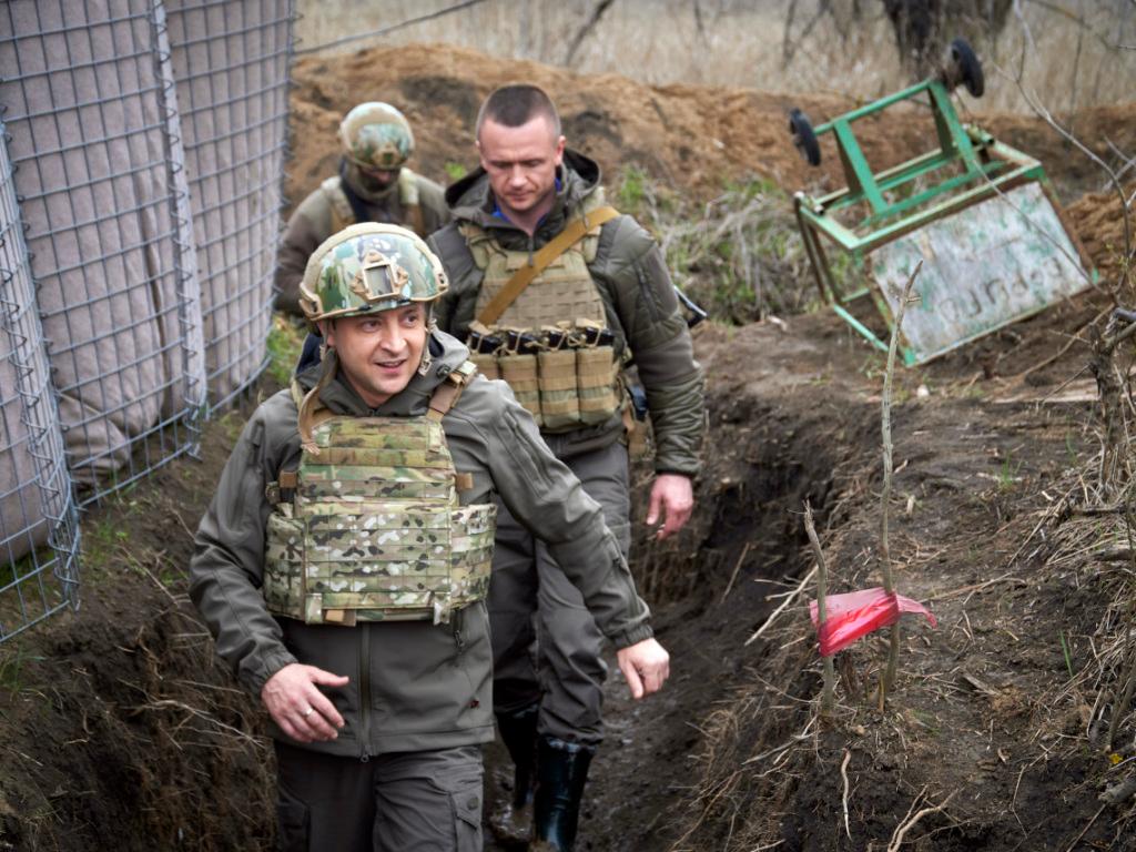 (Keystone-SDA) In schusssicherer Weste stapft der ukrainische Präsident zuletzt oft durch Schützengräben. Die Botschaft von Wolodymyr Selenskyj ist: Stärke zeigen im blutigen Konflikt im Donbass.