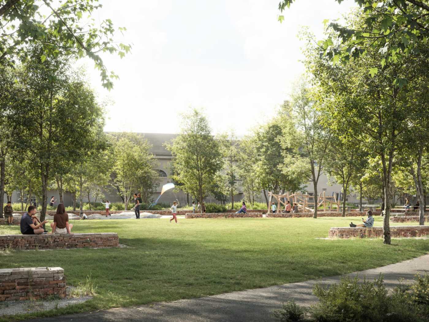 (Keystone-SDA) Geplant ist eine Katja Wulff-Anlage mit Bäumen und einem Spielplatz. Entlang des stillgelegten Gleisbogens soll zudem die Gretel Bolliger-Promenade entstehen mit einem Fussweg durch eine Grünanlage.
