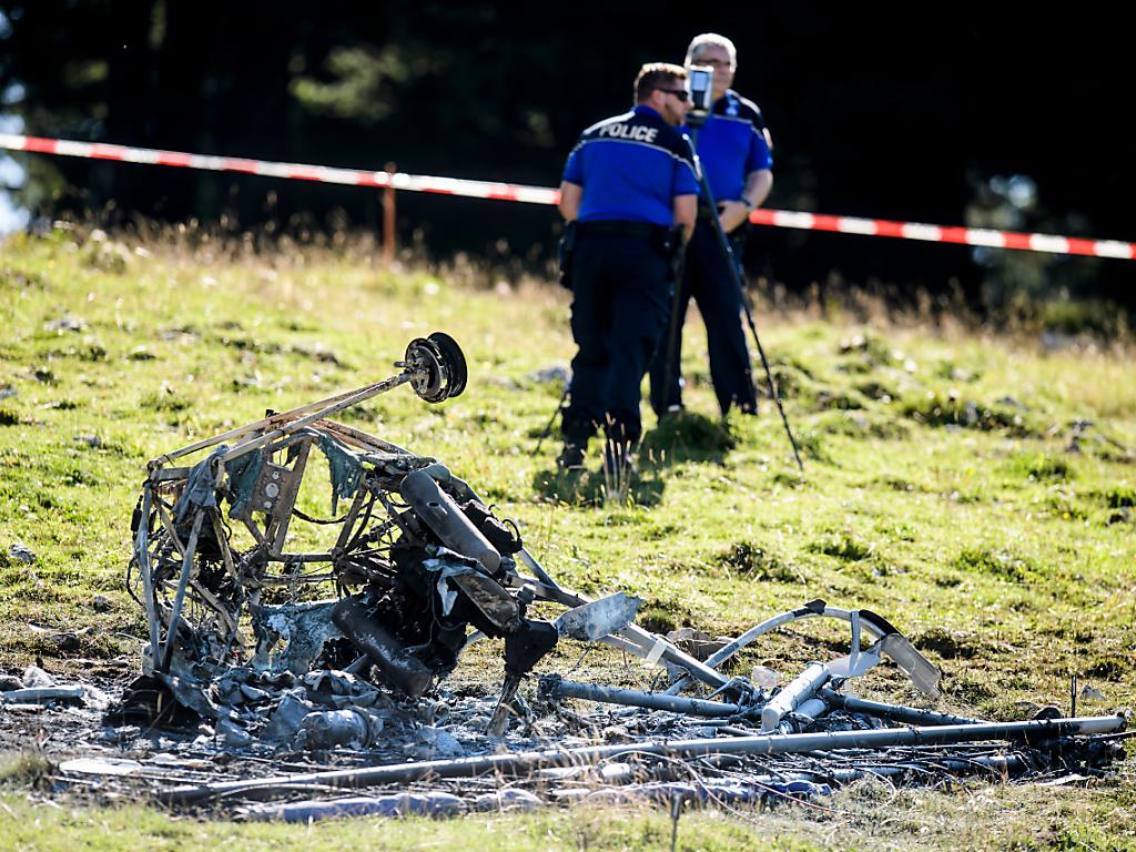 Vom ausgebrannten Flugzeugwrack blieb gemäss Bildern nur noch Gestänge übrig. Die Neuenburger Staatsanwaltschaft eröffnete eine Untersuchung.