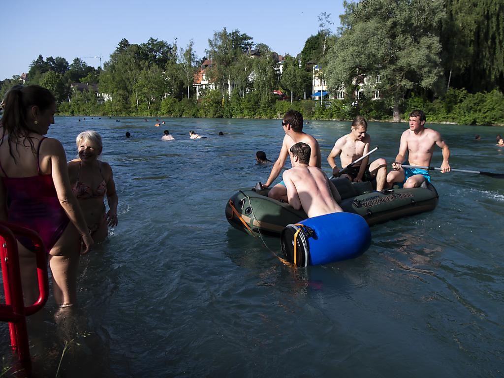 Gran caldo nel mese di giugno anche a Berna, dove la gente si rinfresca nell'Aare (foto rappresentativa) KEYSTONE/ANTHONY ANEX sda-ats