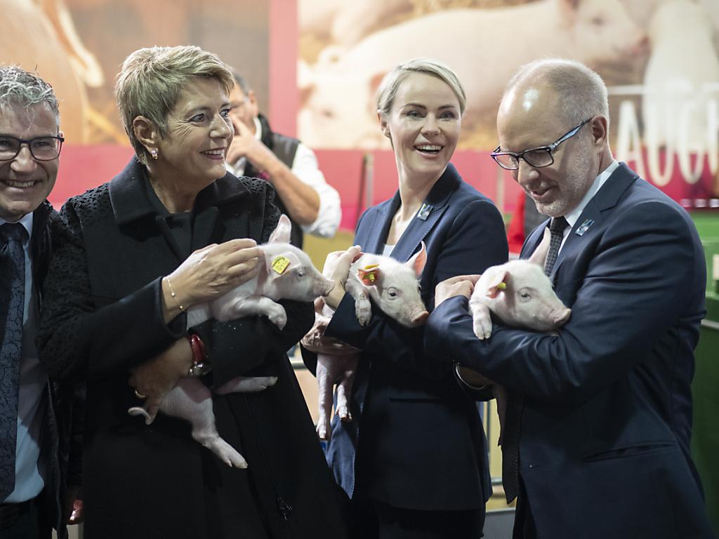 Il programma di apertura dell’Olma prevede sempre un tour dell’area espositiva con ospiti invitati del mondo politico. È inoltre tradizione che un membro del governo nazionale tenga in braccio un maialino, come hanno fatto oggi la consigliera federale Karin Keller-Sutter e la consigliera di Stato zurighese Natalie Rickli (UDC) e il presidente del governo cantonale di San Gallo Stefan Kölliker (UDC). Quest’anno il cantone ospite è Zurigo.