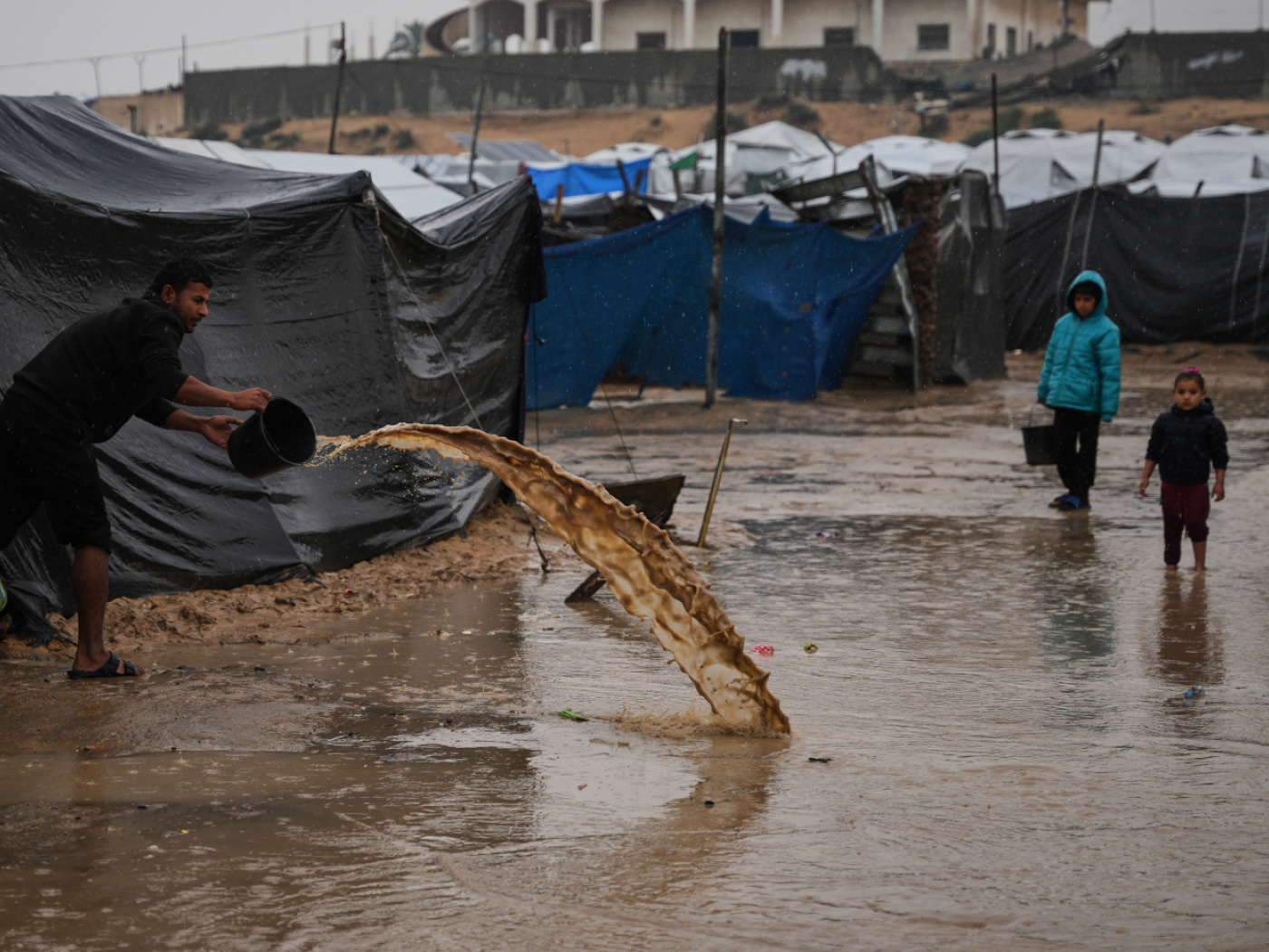 Nel campo di Nuseirat, al centro della Striscia, i palestinesi tentano di liberare l’acqua stagnante con ciotole e secchi, raccontano testimoni all’Afp. I bambini camminano scalzi nel fango. “Il materasso è fradicio da stamattina, i piccoli hanno dormito bagnati”, dice Umm Muhammad Joudah. “Non abbiamo vestiti asciutti”. Saif Ayman, 17 anni, in stampelle, racconta che anche la sua tenda è stata sommersa: “Siamo in sei a dormire su un unico materasso, senza coperte”.