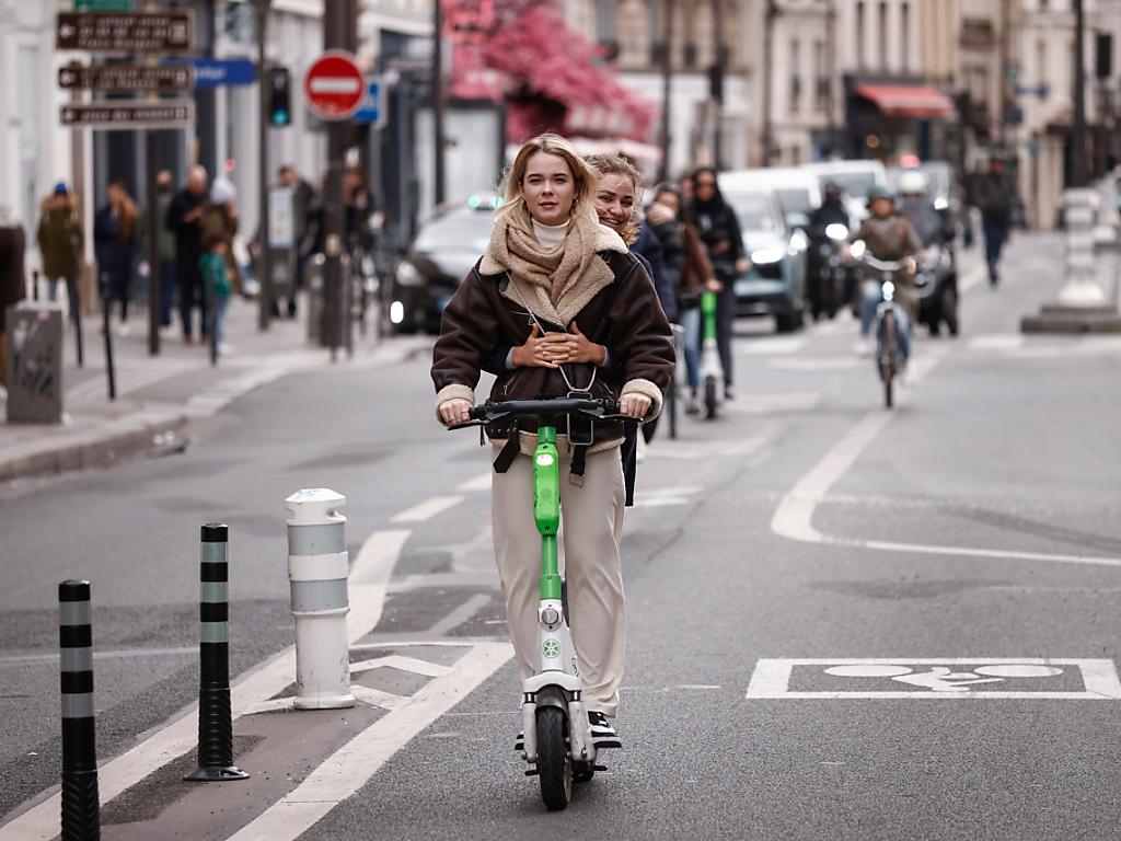 Due giovani su un monopattino a nolo per le vie di Parigi: una scena che ha le ore contate. KEYSTONE/EPA/YOAN VALAT sda-ats