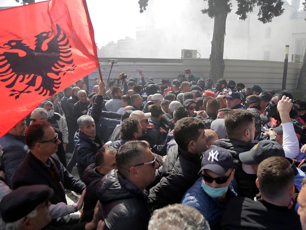 (Keystone-ATS) Tensioni durante la protesta di oggi dell’opposizione albanese, davanti al Parlamento dove è in corso l’ordinaria seduta.