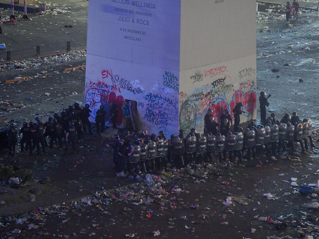 Secondo quanto mostrano le immagini televisive, un gruppo ridotto di tifosi, apparentemente sotto l’effetto dell’alcol, era tuttavia rimasto nelle immediate vicinanze dell’obelisco, il monumento simbolo ed epicentro dei festeggiamenti, vandalizzando lo stesso monumento e le infrastrutture adiacenti.