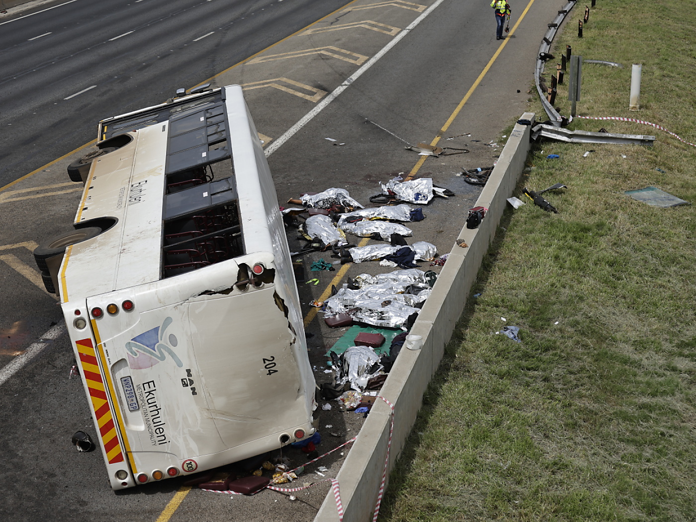 Le immagini riprese sul posto mostrano l’autobus rovesciato su un lato, mentre l’autostrada che porta all’aeroporto è chiusa. Un sopravvissuto all’incidente ha raccontato al canale televisivo Newzroom Afrika che il bus viaggiava ad alta velocità.