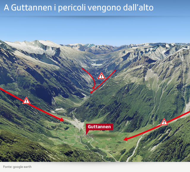 Nel 2009, 2010, 2011 e 2016 anche gli abitanti di Boden, frazione di Guttannen, sono stati sorpresi da una colata detritica. La massa di rocce, ghiaia, neve e acqua scivolata a valle nell’agosto 2010 dal RitzlihornCollegamento esterno, ingrossando il torrente Spreitgraben, ha quasi travolto due edifici e danneggiato una galleria stradale. “Quando vedi macigni di 500-600 tonnellate trasportati come se nulla fosse, ti rendi conto della forza della natura”, osserva Daniel Bürki.