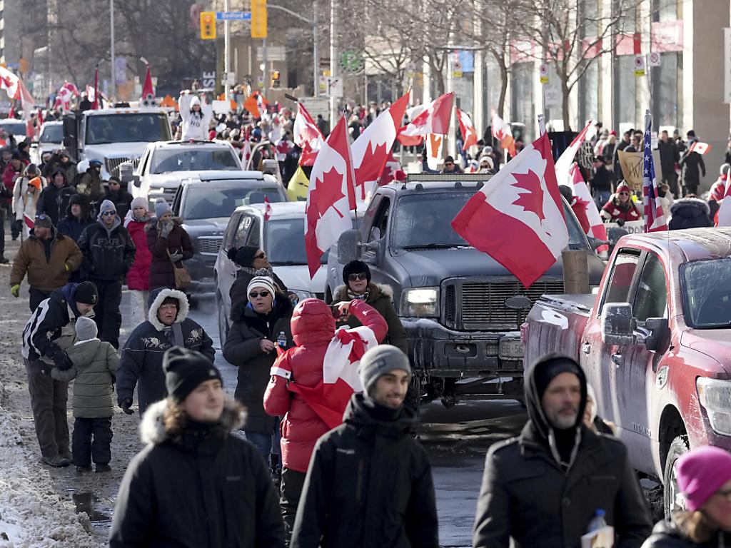 Nella capitale i dimostranti hanno acceso falò e creato saune portatili contro temperature polari, costruendo castelli gonfiabili per i bambini davanti al parlamento, sventolando bandiere canadesi e urlando slogan contro il governo. Presente anche un più piccolo gruppo di anti manifestanti stanchi delle proteste che invitano la folla a tornare a casa. La polizia è presente in forze e ha installato barriere per limitare ai veicoli l’accesso alla città.