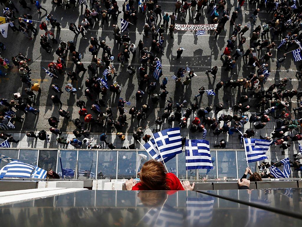 Oltre 100 mila persone si sono riunite oggi nel centro di Atene per protestare contro ogni ipotesi di accordo sul nome 'Macedonia' con l'ex repubblica jugoslava (Fyrom). KEYSTONE/EPA ANA-MPA/EPA/YANNI sda-ats