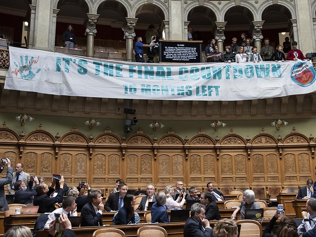 Sullo striscione era leggibile la scritta “Final coundown – mancano 16 mesi”. I giovani hanno persistito nella loro azione nonostante gli ammonimenti della presidente della camera, Marina Carobbio Guscetti (PS/TI), a lasciare l’emiciclo.