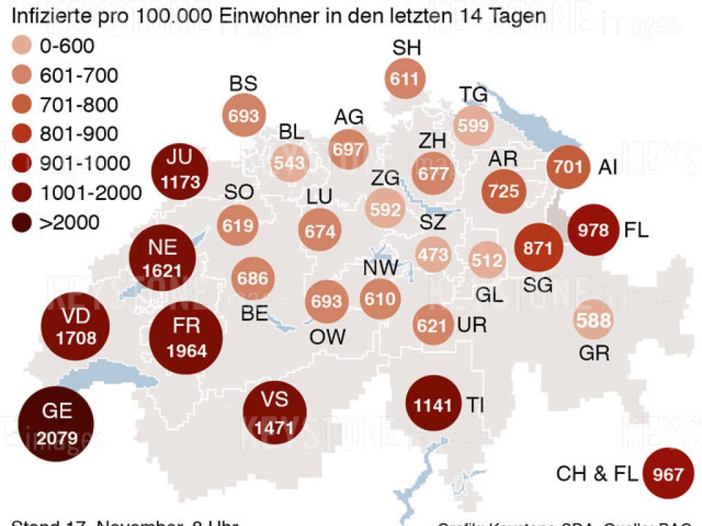 L’incidenza della malattia ha raggiunto i 3’789,84 casi ogni 100’000 abitanti dall’inizio della pandemia e 711,32 casi ogni 100’000 abitanti negli ultimi quattordici giorni.