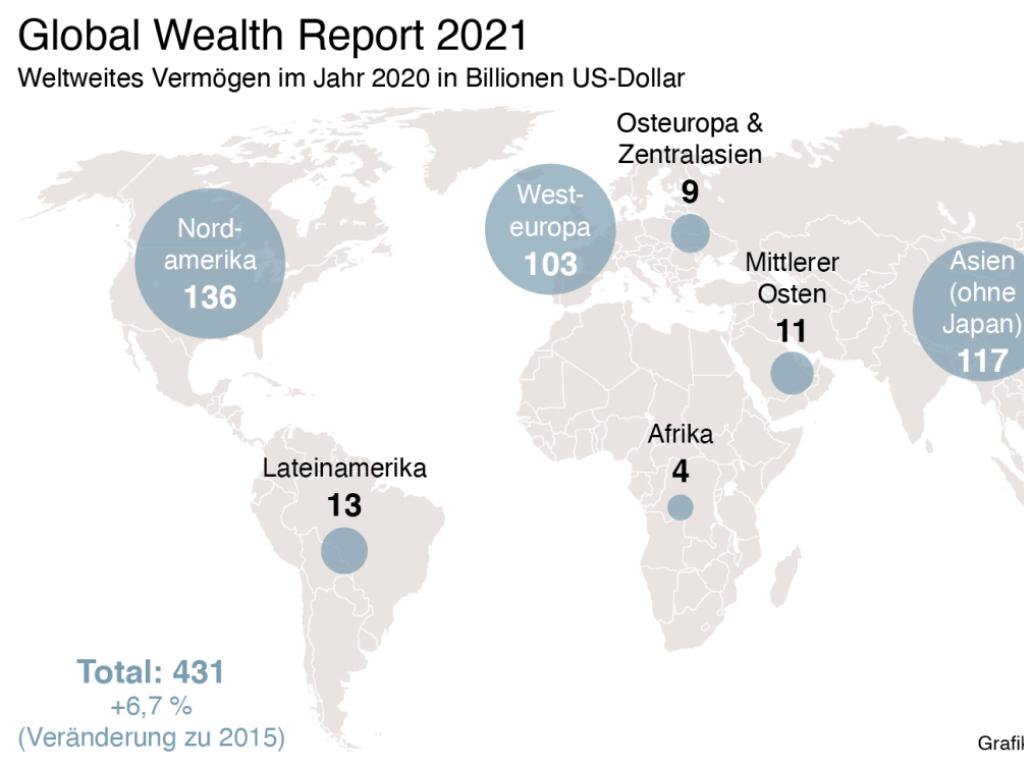 La tendenza osservata già dal 2000 indica che anche in futuro il trend non cambierà: gli autori dello studio prevedono che la ricchezza globale aumenterà del 39% nei prossimi cinque anni fino a 583’000 miliardi di dollari nel 2025.