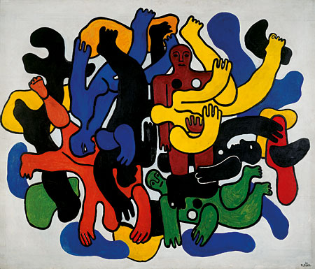 Già in questi lavori si intravede il linguaggio innovativo che caratterizzerà l’arte di Léger per il resto della sua vita: il pittore francese comincia nelle sue opere a decomporre e ricomporre frammenti di immagini. Accatasta forme su forme, sovrappone figure su figure. E molto spesso, in un processo d’infinita ricostruzione, riprende le stesse forme e le stesse figure in altri dipinti, proponendo delle serie tematiche diventate famose nei decenni seguenti, quali “I costruttori”, “I tuffatori” o “I pappagalli”.