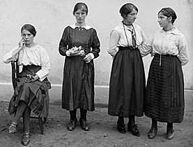 Il gruppo di fotografie dedicato alle operaie della Cima Norma è quasi didascalico: le fotografie ritraggono donne-bambine, donne operaie, a metà strada tra il mondo religioso e quello laico. Camicetta rigorosamente bianca, gonna rigorosamente nera, capelli disciplinati nella chioma raccolta.